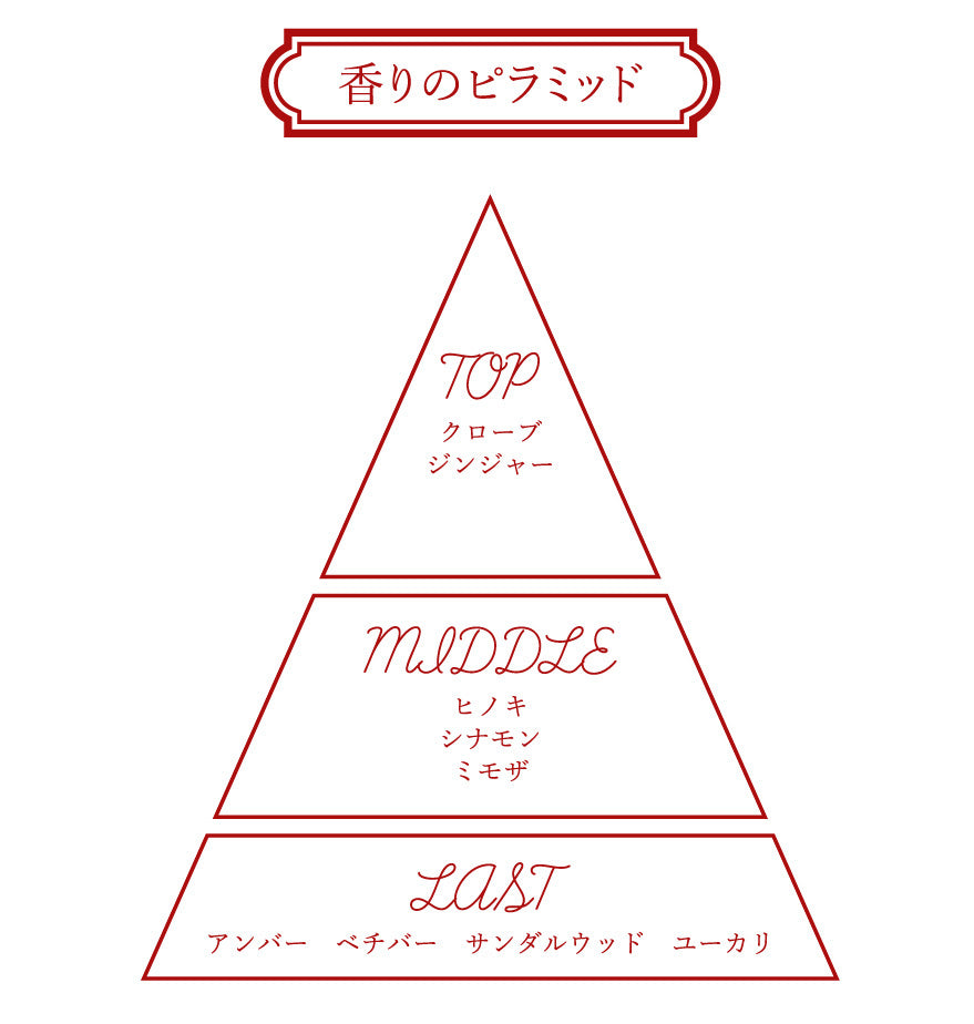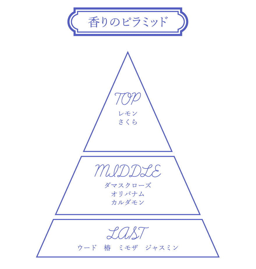 気高い龍賀一族の女にふさわしい高級精油の天然ダマスクローズに、スパイスの女王と称されるカルダモンを添えた豊かな香りが、凛と匂いたちます。