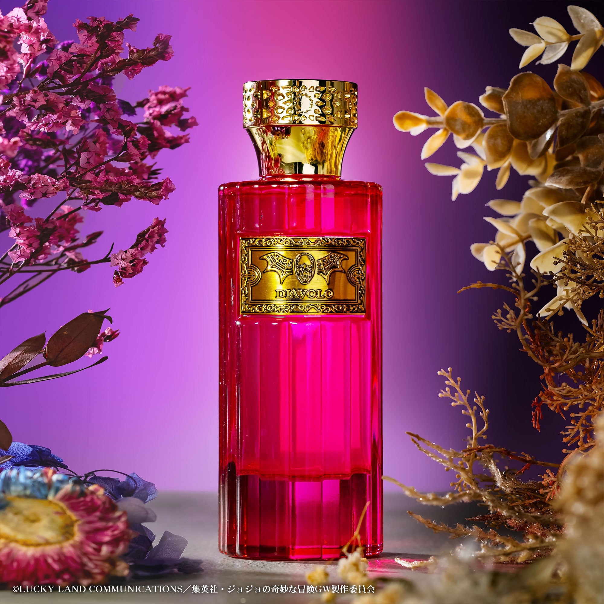 アニメ『ジョジョの奇妙な冒険 黄金の風』の世界観を天然精油*の芳醇でリッチな香りで表現した美しく輝くオーデパルファムコレクション。
