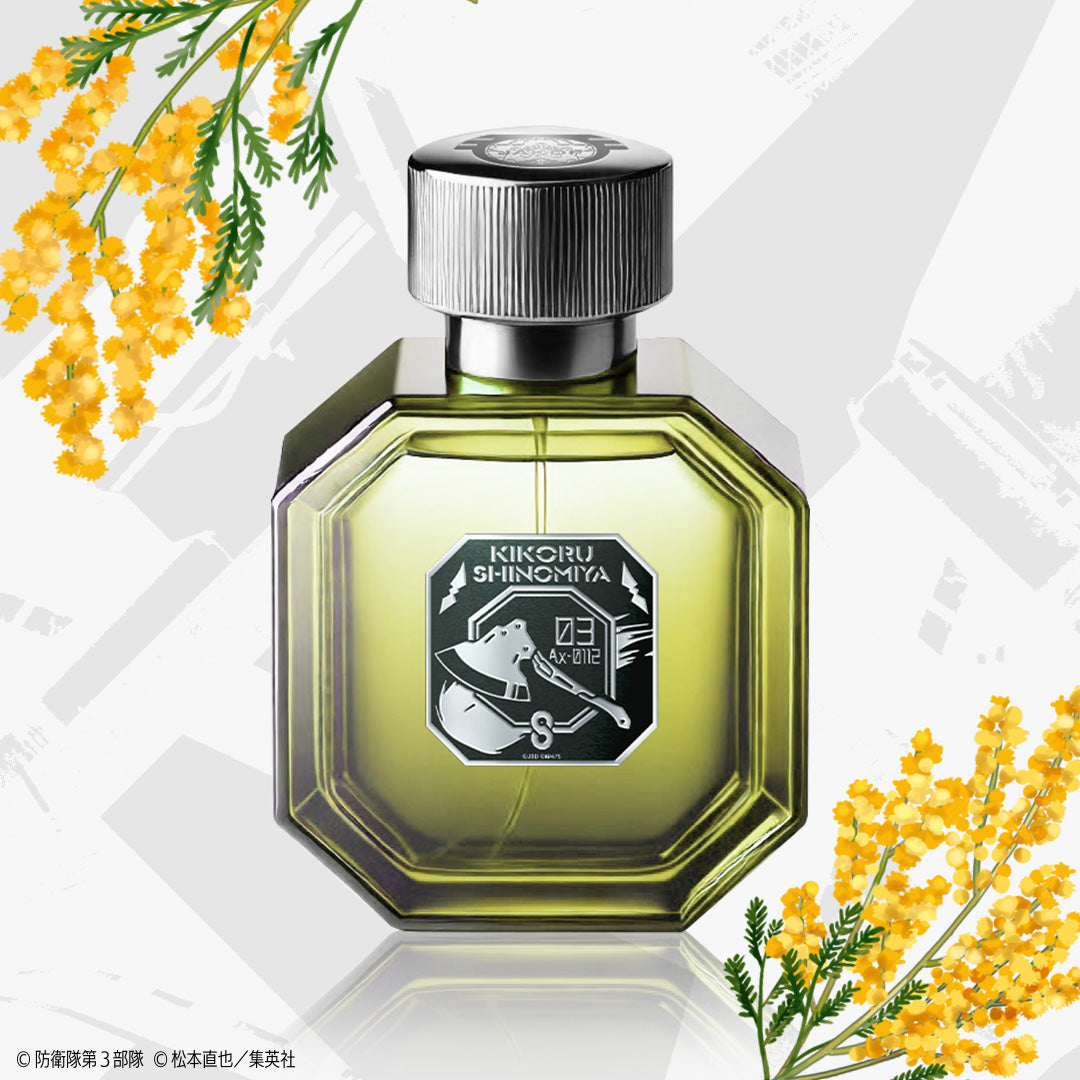 防衛隊に入ること、そしてミナの隣に在ることへの再挑戦の「燃える思い」から始まり、情熱と友情、そして仲間との絆を経て、「怪獣8号」という正体を秘めながらも仲間を守り抜く決意へと至る構成です。日比野カフカの人懐こさと力強さ、そして影を抱えながらも前へ進む姿を香りに込めた、温かくも芯の通ったフレグランスです。